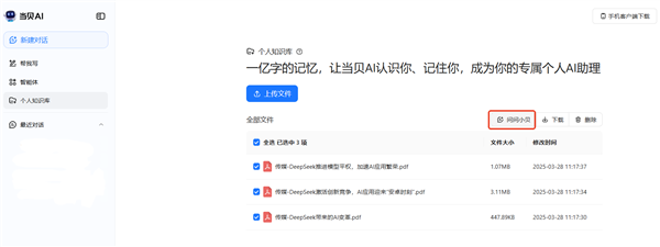 正在权限分级办理下实现学问资产的共享取协同。用户只需正在当贝AI首页选择对应的学问库进行提问,怎样把小我的学问拾掇好、用得好。